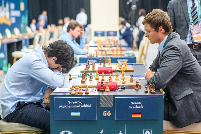 GM Frederik Svane playing against GM Mukhammadzokhid Suyarov