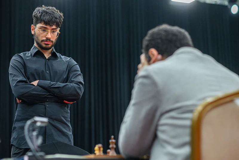 GM Yağız Kaan Erdoğmuş playing against GM Aleksandra Goryachkina