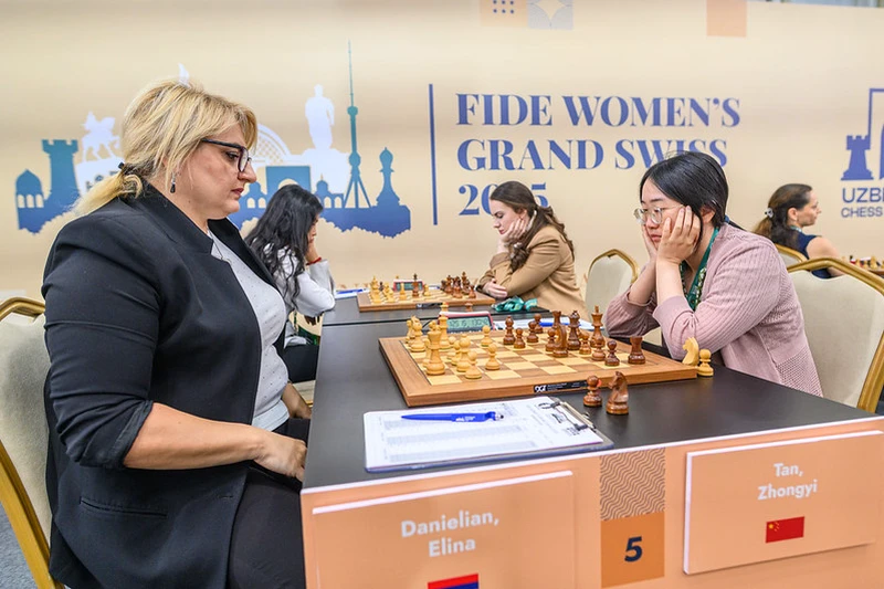 GM Tan Zhongyi played a remarkable accurate game in the Reversed Grünfeld, making stunning use of her bishop pair advantage, which only continued to snowball as GM Elina Danielian could not keep up with the positional pressure.