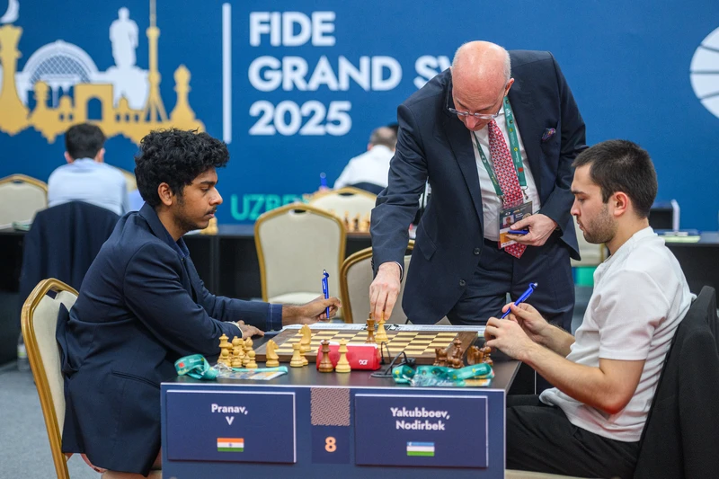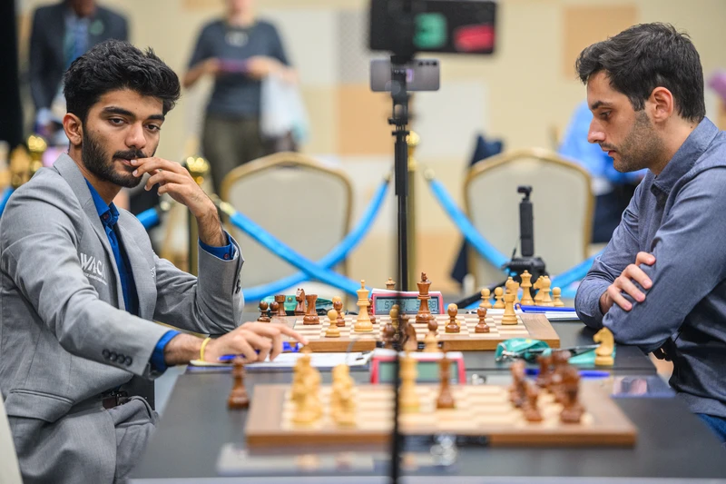 The tournament leader, GM Parham Maghsoodloo, scored a safe draw against his opponent, GM Arjun Erigaisi, in the Symmetrical English.