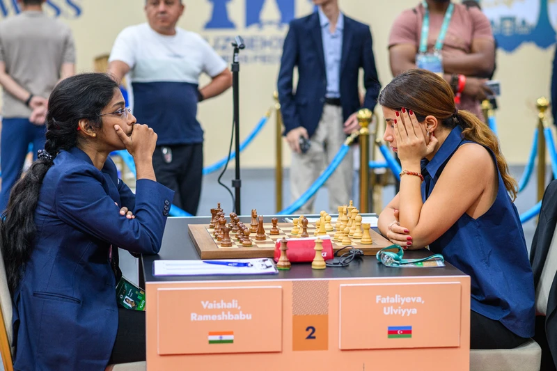 GM Vaishali Rameshbabu scored a clear win against IM Ulviyya Fataliyeva, showcasing an impressive technique in a game always under her control. Exploiting her opponent’s inaccuracies, Vaishali was able to convert her initiative into a more static advantage, and after she secured her b and c-pawns as future connected passed pawns, she liquidated into a winning rook endgame. You can review the game in depth in our annotations section.
