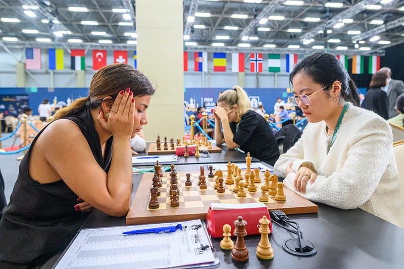 | GM Bibisara Assaubayeva | GM Vaishali Rameshbabu |