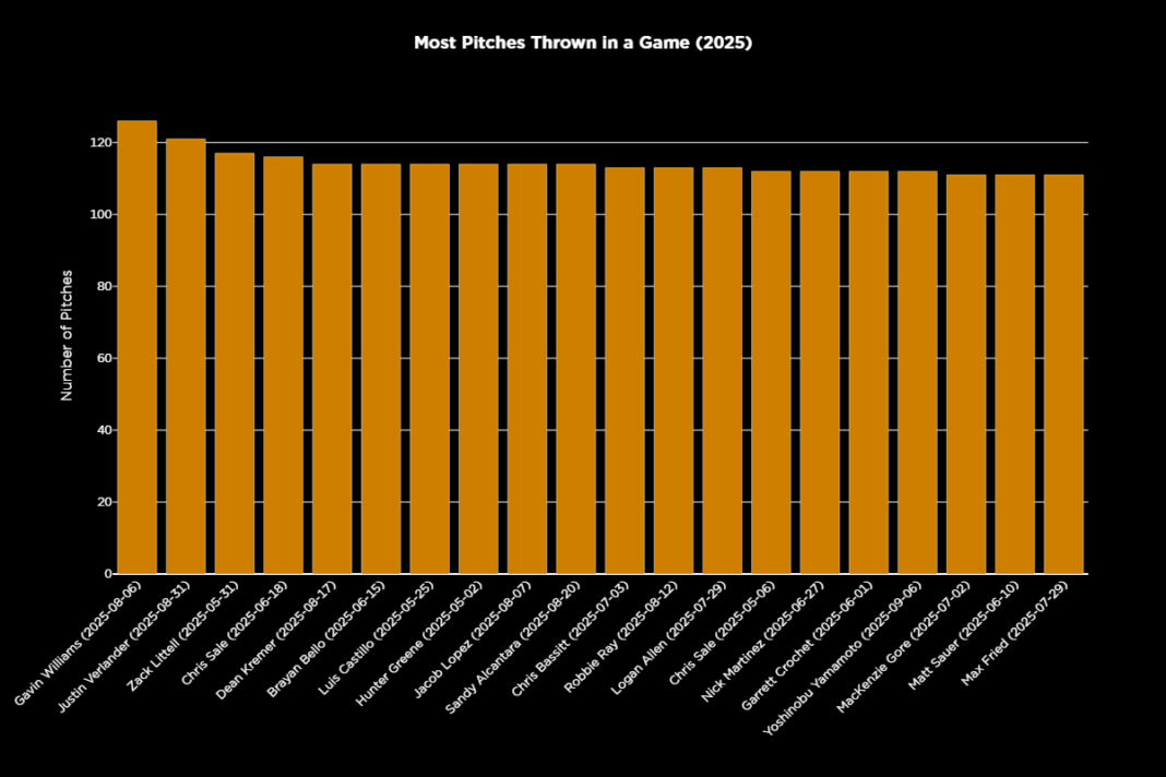Royals starter Seth Lugo was the last pitcher, prior to Williams and Verlander to exceed 120 pitches in an outing back on Sept. 26, 2023.