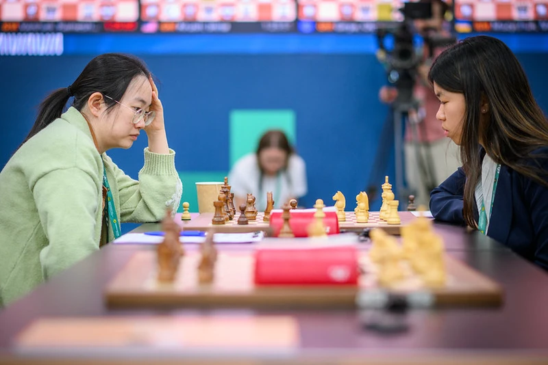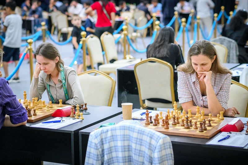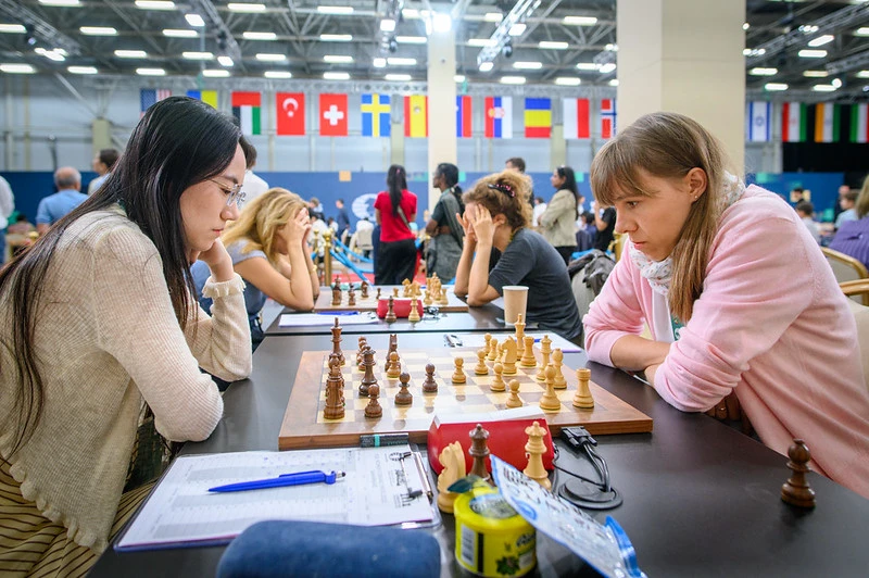 The board 2 encounter between GM Vaishali Rameshbabu and IM Song Yuxin as well as the board 4 clash between GM Olga Girya and IM Guo Qi were rather quick, correct draws, though in the former game, both Vaishali and Song had some chances to play for more.