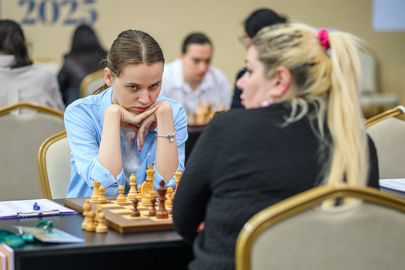 WGM Xeniya Balabayeva with IM Klaudia Kulon in the foreground