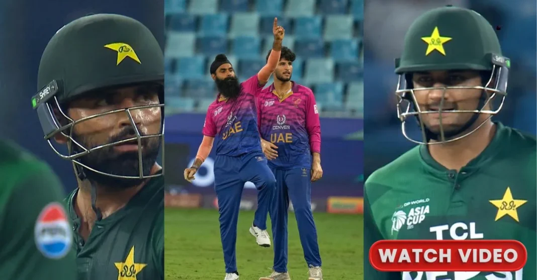 Two balls later, he trapped Hasan Nawaz lbw with a flighted delivery pitching in line and clipping leg stump. Nawaz’s brief stay ended at 3 runs off 4 balls, deepening Pakistan’s collapse. Once again, Simranjeet repeated the Dhawan-style celebration, slapping his thigh and raising his finger, signaling his dominance. The twin strikes not only broke crucial partnerships but also shifted the pressure entirely onto Pakistan’s lower middle order. His clever variations, combined with the energetic celebration, injected momentum into the UAE side. Pakistan’s innings, which had looked set for a recovery, now teetered precariously. Simranjeet’s over became the defining moment, leaving both batters frustrated and the crowd roaring in approval.