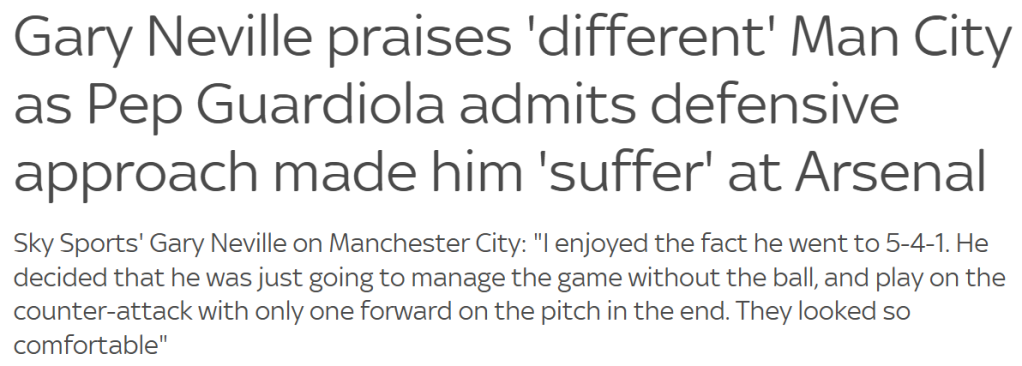 Manchester City come to Arsenal, play defensively looking to hit us on the break, draw 1-1 and are praised for the way they approached the game.