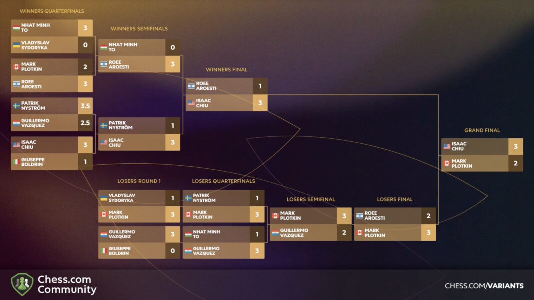 “I did, yeah!” said Chiu afterward when asked if he’d considered himself the pre-tournament favorite. He called it a “great event,” adding: “I hope Chess.com continues to run these variant tournaments because I think it does a good job bringing players and audience members something new and exciting to watch.”