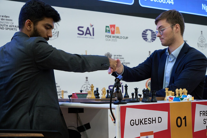 GM Frederik Svane eliminated world champion GM Gukesh D after the former was able to defeat him as Black in their second game encounter. GM Anish Giri and GM Nodirbek Abdusattorov are also out of the tournament after losing to GM Alexander Donchenko and GM José Martínez Alcántara, respectively. GM Sam Shankland got the best of GM Vidit Santosh Gujrathi, while GM Maxime Vachier-Lagrave narrowly escaped exiting the World Cup after winning his Armageddon game against GM Vladislav Artemiev.