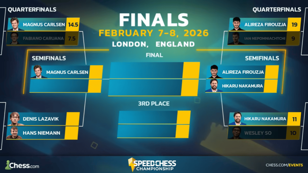 HomeChess2025 Speed Chess Championship Quarterfinals: Firouzja Eliminates Nepomniachtchi, Faces Nakamura Next