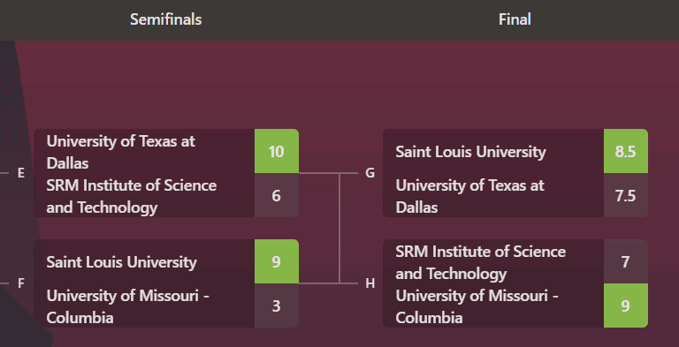 That victory and three others catapulted SLU into the lead, 4.5-3.5 at the halfway point of the match. UTD pulled back to even in round three on the strength of victories by Srivatshav and Aditya. That set up a winner-takes-all final round.