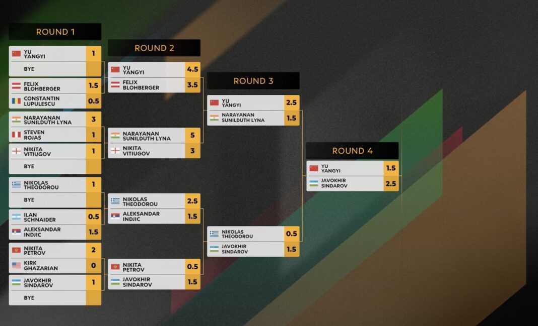 Two years later, then 17 and seeded 55th, he knocked out 10th seed GM Maxime Vachier-Lagrave as he again reached round four, only to lose to GM Arjun Erigaisi. This year, as 16th seed, Sindarov was expected to reach round five, and he did, needing a tiebreak only against GM Yu Yangyi.