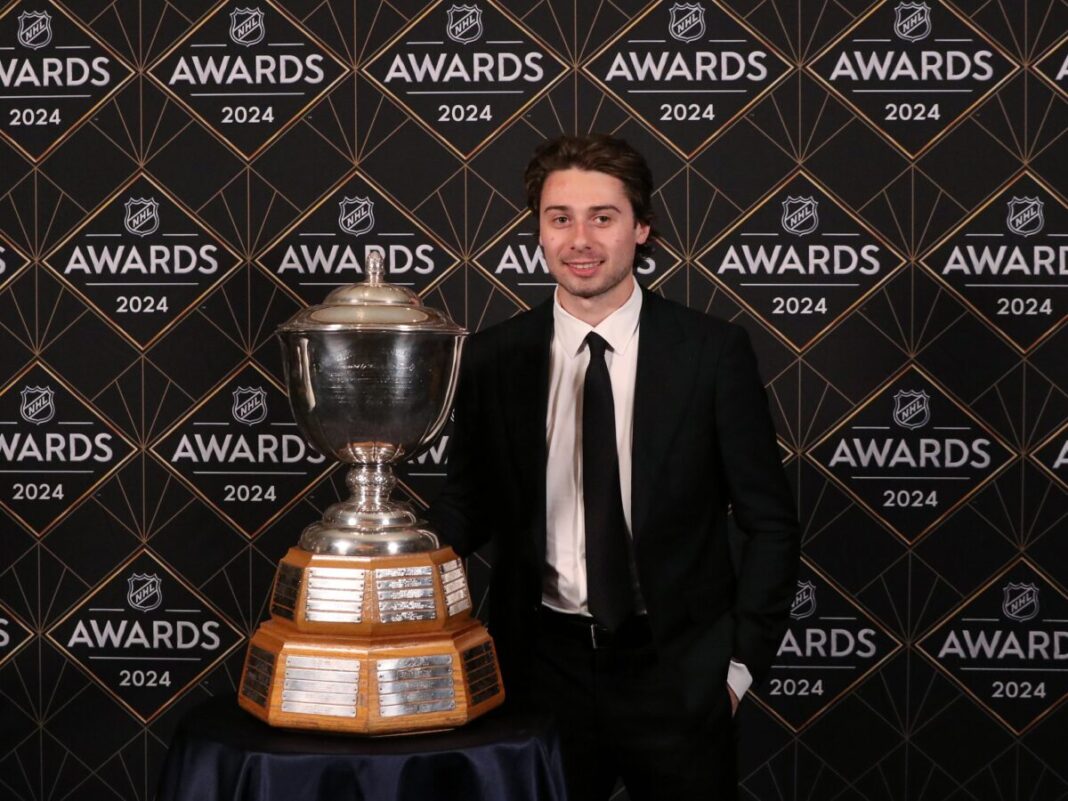 Quinn Hughes of the Vancouver Canucks after winning the 2024 Norris Trophy
