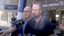 Throughout this questioning and responses, the optics were not helped by the introducer – Melbourne Cricket Club’s chief executive, Stuart Fox – having a grim expression and looking as though he was trying to spot anyone in the press, or surrounding spectators, who might be carrying a gun as a prelude to an assignation attempt.