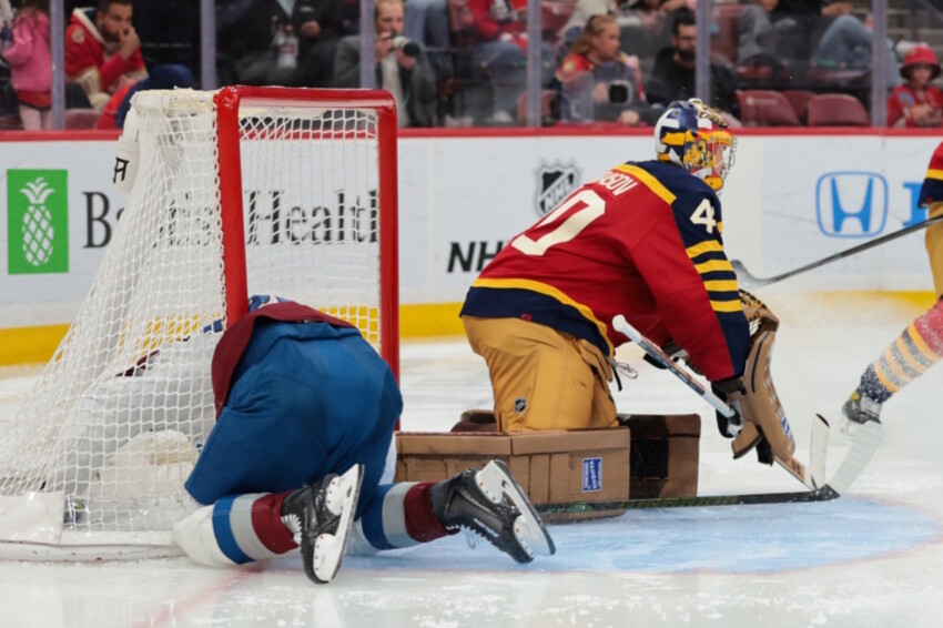 Gabriel Landeskog needed assistance leaving the ice after crashing hard into the post. pic.twitter.com/3PeGwYxuKz