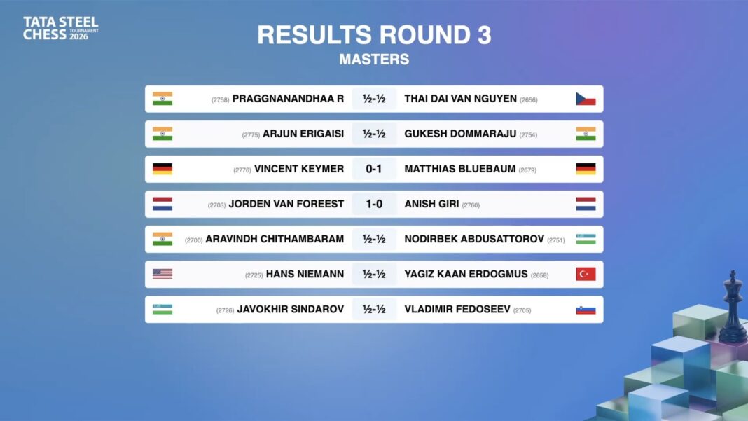 Tata Steel Chess 2026 Round 3: Van Foreest, Bluebaum Beat Giri, Keymer