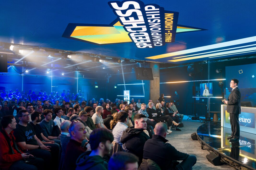 The in-person Finals of the Speed Chess Championship are taking place at 180 Studios in London, England on February 7 and 8. Picking up where we left off with the Quarterfinals in November, the event begins with the final four. Over the next two days they’ll face off in Chess.com’s traditional format of 90 minutes for 5+1, 60 minutes for 3+1, and 30 minutes for 1+1. The player to accrue the most points in the allotted time wins the match.