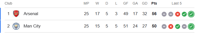 89, 85, 83, 80, 76 – What is the magic number for Arsenal and Man City?