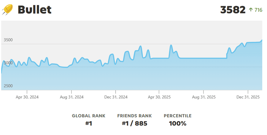 On February 14, 15-year-old American GM Andy Woodward broke the Chess.com bullet rating record, previously held by GM Hikaru Nakamura. Nakamura set the previous record of 3570 on November 11, 2020, meaning that it stood for more than five years. Woodward, the recent winner of the Tata Steel Chess Challengers tournament, broke the record by winning a remarkable 25 hyperbullet games in a row.