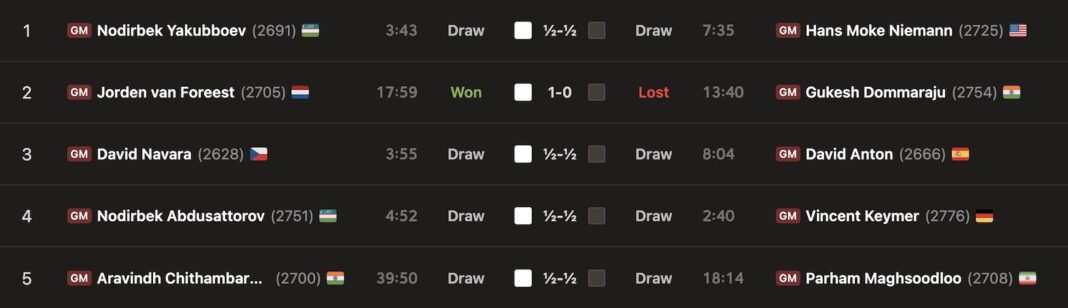 Jorden van Foreest beats Gukesh and knocks the World Champion out of the Top 10! https://t.co/hgK90zowBL pic.twitter.com/2L1DWwJtUK