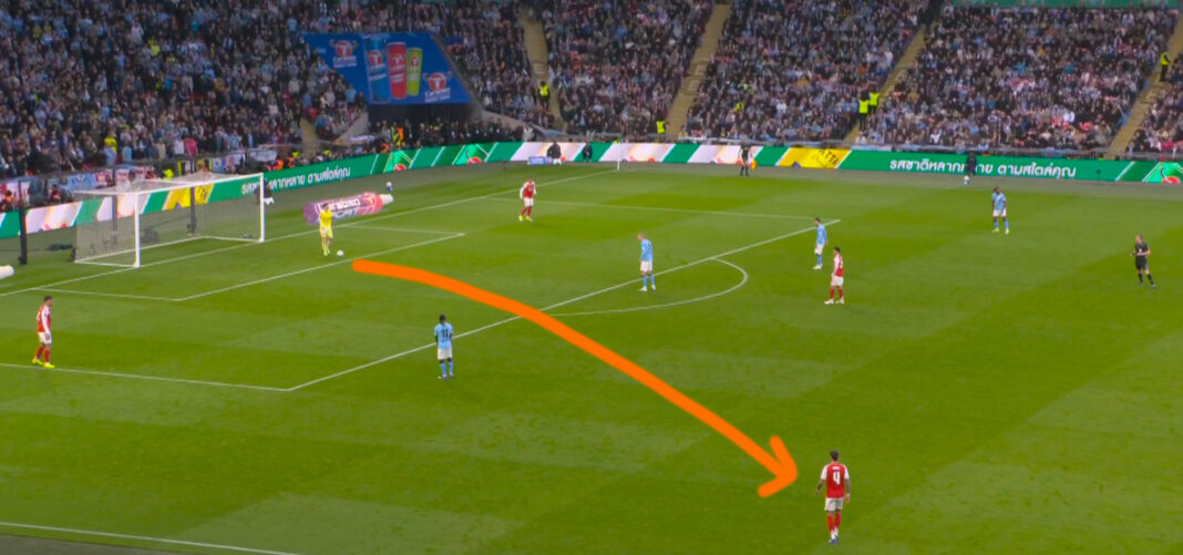 As I said yesterday, for all the focus on Kepa’s mistake, the bigger issue was his inability to find the kind of passes David Raya can. For me, Raya 100% finds Ben White here – or at least tries to.
