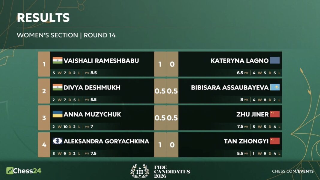 FIDE Candidates 2026 Round 14: Vaishali Wins Women’s; Sindarov Breaks Record